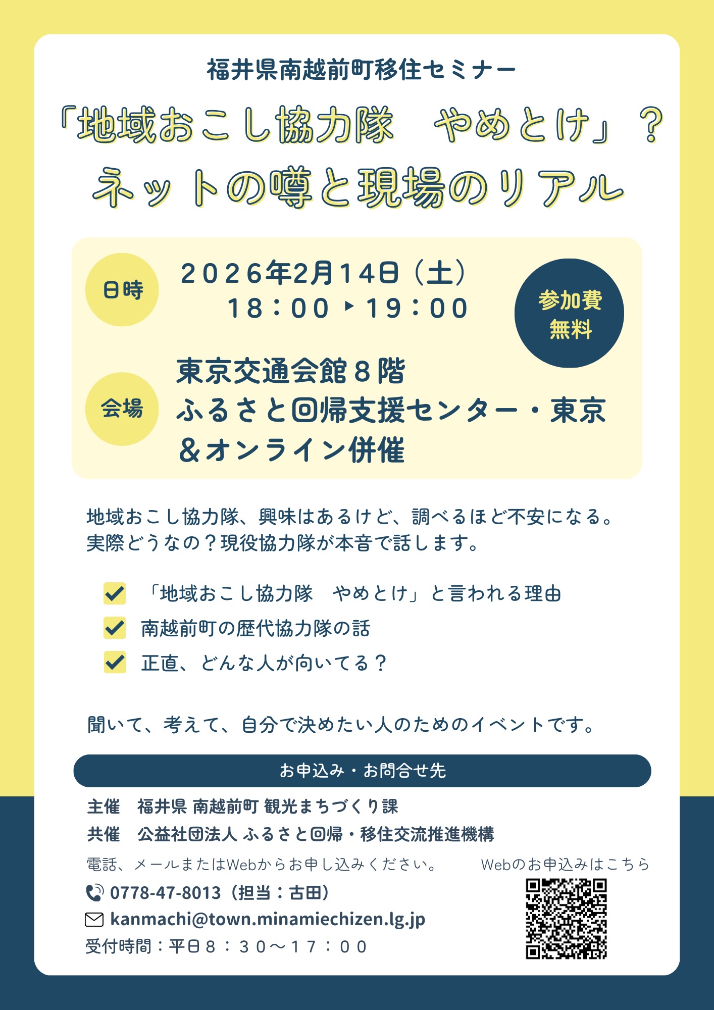 主催:福井県南条郡南越前町/公益社団法人ふるさと回帰・移住交流推進機構